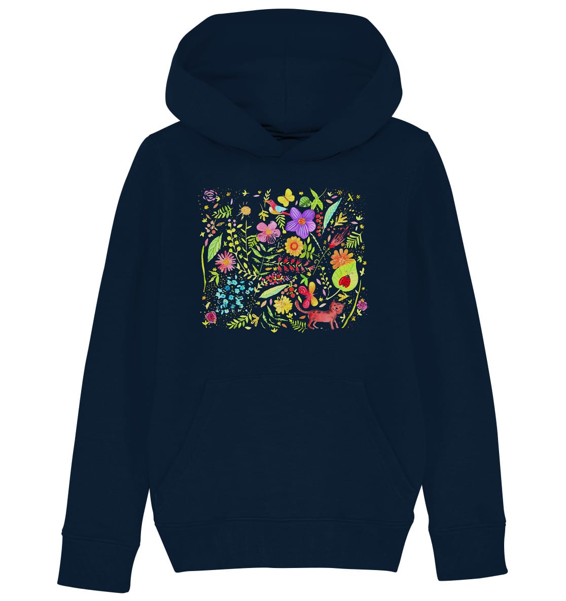 - Doppelabsteppung an Kängurutasche, Ärmelansätzen/-enden & unterem Saum