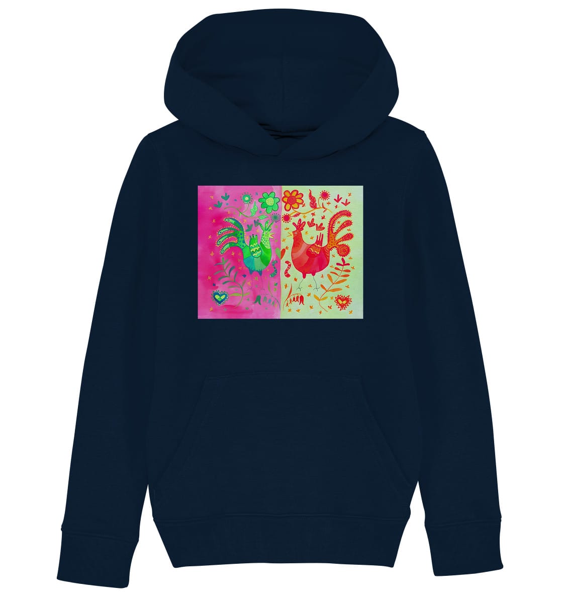 - Doppelabsteppung an Kängurutasche, Ärmelansätzen/-enden & unterem Saum